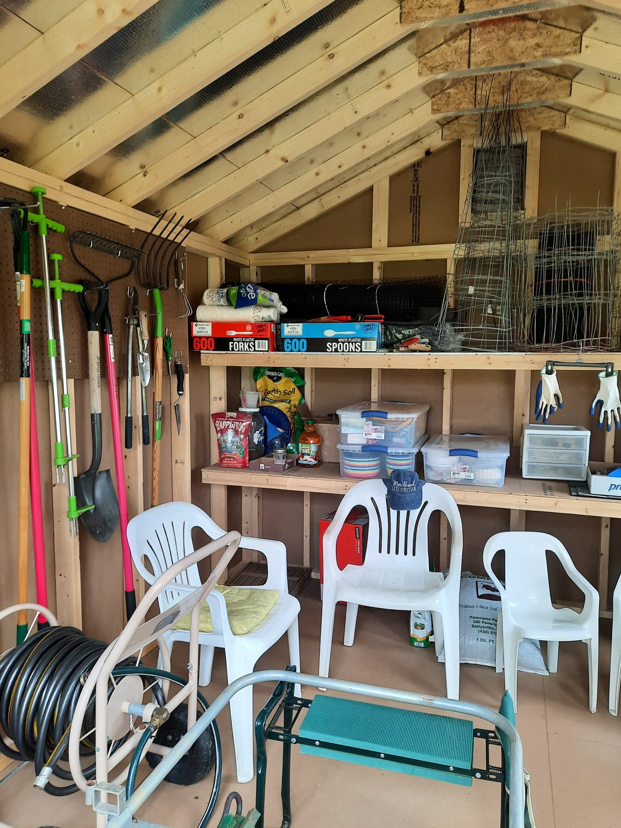 The shed’s importance grew out of the garden’s increased significance during COVID-19. When the church building closed for the pandemic, the congregation met outdoors near the garden. The 10×12 shed also stores chairs and tables, tubs of plates, bowls, cups, silverware, other picnic supplies, and outdoor games.