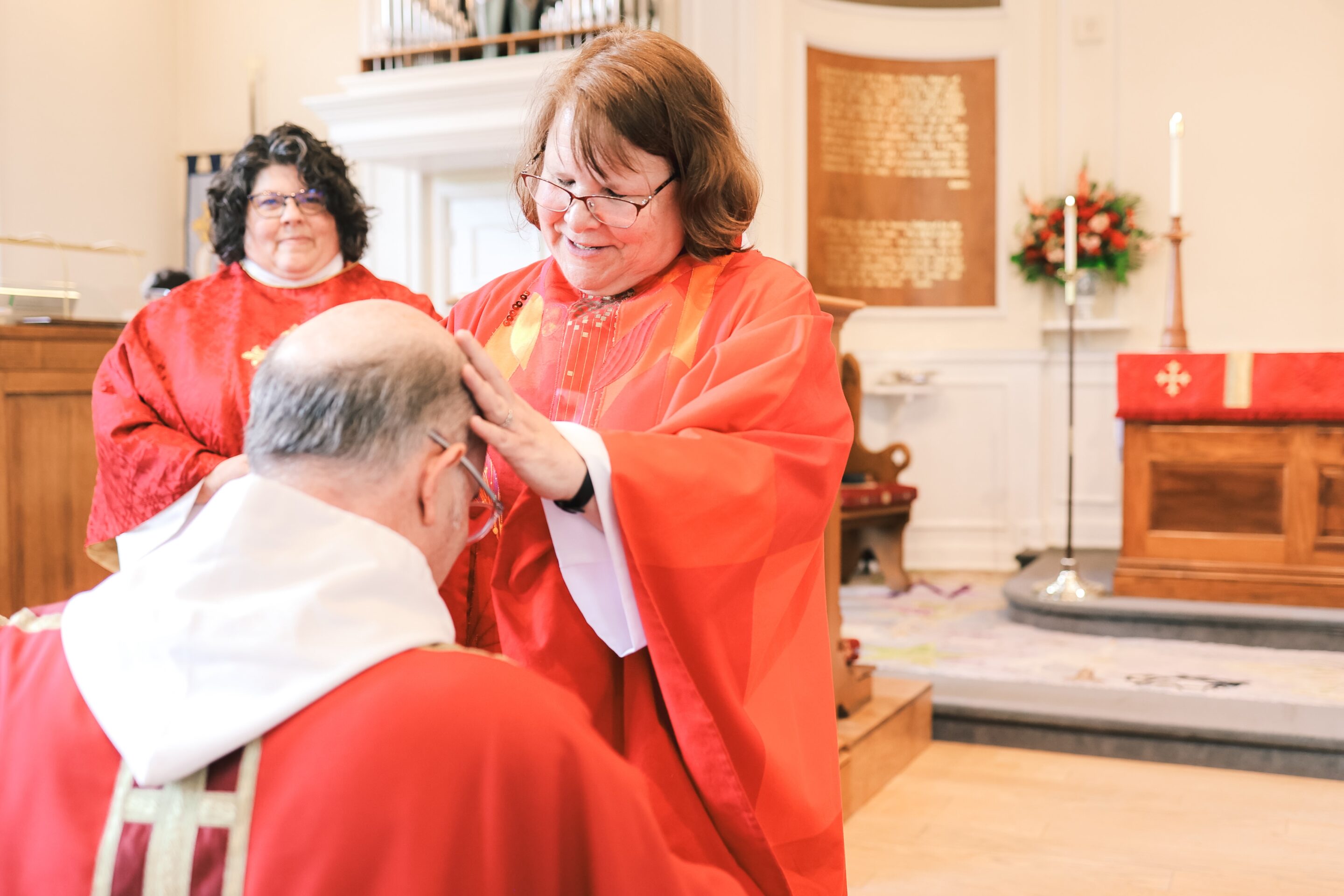 “It’s a pretty great thing to have been ordained in a group of three women who were all born into a world where women weren’t really allowed to imagine themselves at the altar, unless it was before and after the service, tending to the altar linens and floral arrangements,” Kara Laughlin said. (Her childhood parish priest, The Rev. Gordon J. Stenning, was one of the six signers of the original resolution to allow women to be ordained priests in The Episcopal Church.)