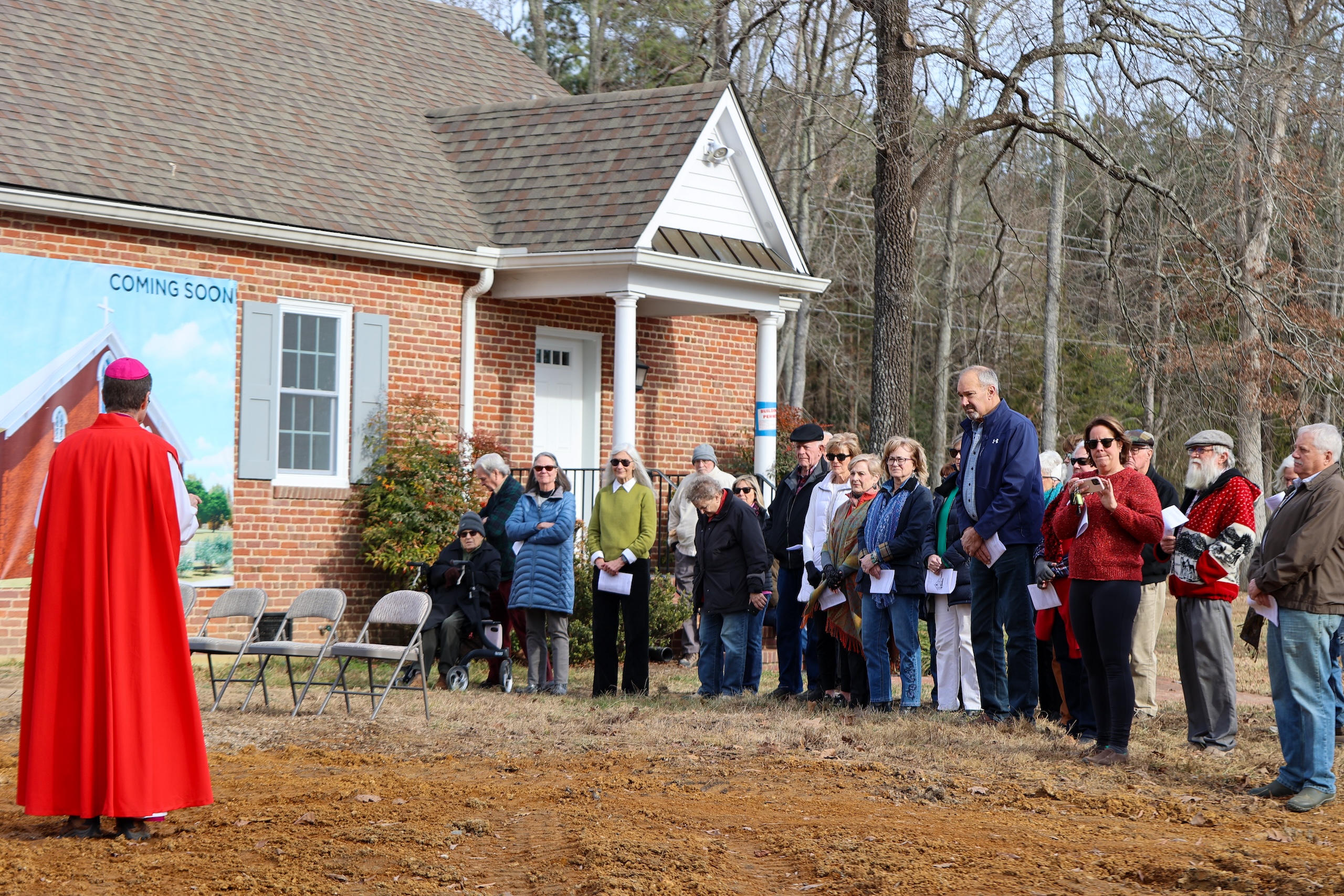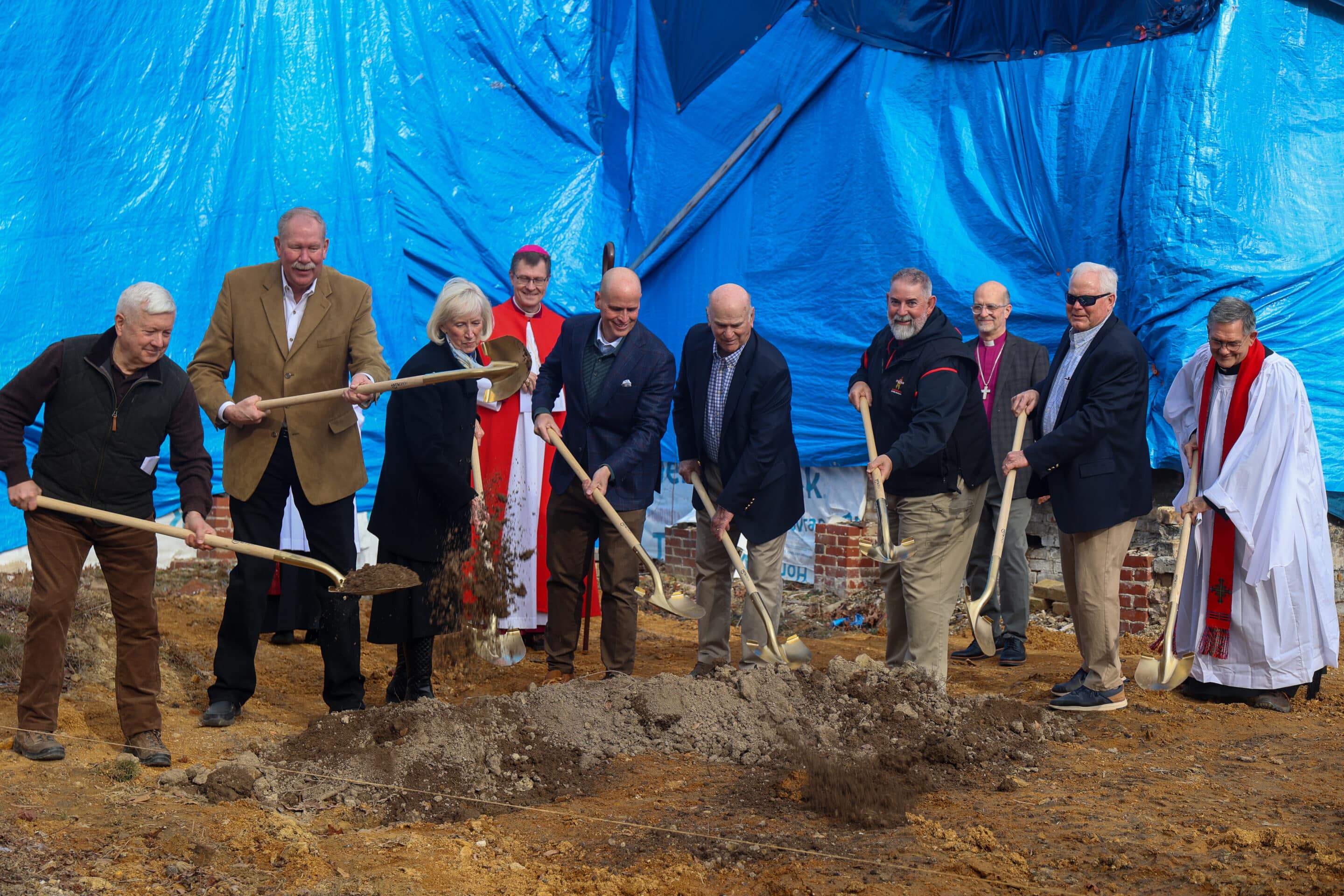 Stevenson scooped the first dirt, saying, “Since faithful people desire to build a house of prayer, dedicated to the glory of God and in honor of St. Peter, on this ground, now marked with the symbol of Christ. Therefore, I break ground for this building, in the Name of the Father, and of the Son, and of the Holy Spirit. May the Gospel be preached, the Sacraments administered, and prayers and praises offered in this place, from generation to generation.”